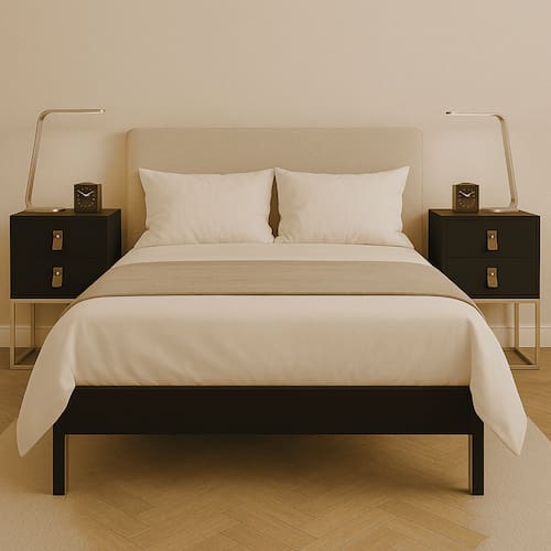 Kit 2 Mesas de Cabeceira UNIC 45 Transforme seu ambiente com esta mesa de cabeceira que une charme retrô, robustez e funcionalidade! Ideal para quartos, salas ou ambientes contemporâneos, seu design industrial destaca-se pela combinação de materiais e acabamentos de alta qualidade. Destaques do Produto: - Design Retrô Industrial: Combina linhas minimalistas com o toque rústico dos puxadores em couro natural e a base metálica em ferro.- Estrutura Resistente: Corpo em MDF/MDP de alta qualidade com pintura, garantindo elegância e durabilidade.- Puxadores em Couro: Dois puxadores em couro natural que proporcionam um acabamento sofisticado e luxuoso.- Base em Ferro: Estrutura robusta em ferro com pintura eletrostática, estilo geométrico aberto, oferecendo estabilidade e um visual leve.- 2 Gavetas Espaçosas: Ideal para organizar objetos pessoais, livros, acessórios ou itens do dia a dia, mantendo seu ambiente sempre em ordem. Especificações Técnicas:
