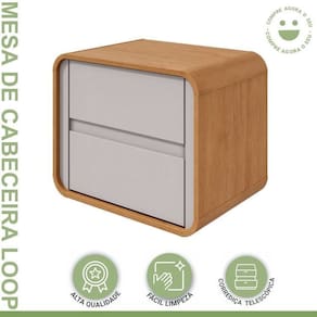 As mesas de cabeceira Loop são complementos elegantes e funcionais para qualquer quarto. Com seu design contemporâneo, essas mesas oferecem um toque de modernidade e sofisticação ao ambiente. Seus tampos espaçosos e gavetas integradas proporcionam espaço de armazenamento conveniente para itens essenciais ao alcance da cama. As mesas de cabeceira Loop são a escolha ideal para adicionar estilo e praticidade à sua área de dormir, combinando perfeitamente com uma variedade de estilos de decoração. Altura do Conjunto: 45 cm Ambiente: null Ambiente Principal: Quarto Cor: Amêndoa Clean/Off White Informação Complementar: 2x Mesa de Cabeceira 2 Gavetas Loop Amêndoa Clean/Off White Largura: 55 cm Altura: 45 cm Peso: 13,65 kg Profundidade: 38 cm Necessita Montagem: Sim