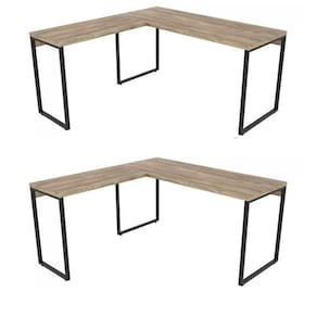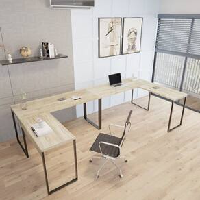 Kit 2 Mesas de Escritório em L Estilo Industrial 1,50mx1,50m Kuadra Carvalho - Bege