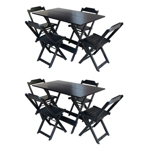 Kit 2 Mesas Dobraveis em Madeira Padrão 120x70 com 4 Cadeiras - Preto - Preto