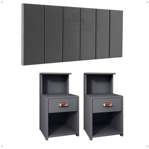 Transforme seu quarto com a Cabeceira Júlia e Kit 2 Mesinhas Cléo: conforto, elegância e funcionalidade em cada detalhe. A cabeceira estofada traz charme e apoio ideal para seus momentos de descanso, enquanto a mesa oferece o espaço perfeito para manter tudo à mão. O toque que faltava para seu ambiente ficar completo.