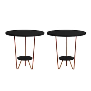 Kit 2 Mesas Laterais Redonda Industrial Italy Ferro Cobre e Tampo Preto