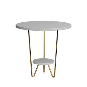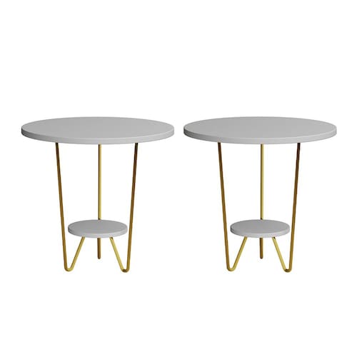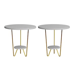 Kit 2 Mesas Laterais Redonda Industrial Italy Ferro Dourado e Tampo Branco
