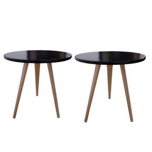 Kit 2 Mesas Lateral De Canto E Apoio Redonda Vintage 44 Cm preto