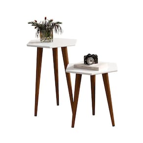 Kit 2 mesas lateral e apoio sala retrô pés palito decor cor branco - comprar moveis em casa Jogo de 2 mesas lateral e apoio, é vendido pela comprar móveis em casa, oferece um ambiente sofisticado de alta qualidade e acabamento para sua sala.