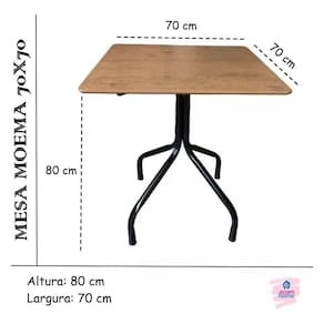Kit 2 Mesas Moema 70x70 Para Sorveteria Restaurante Imbuia Base Preta Mesa Moema 70 x 70 A Mesa Moema foi projetada para garantir praticidade e facilidade para aproveitar o melhor do seu espaço. Com design moderno e atraente, este jogo de mesa atende a ambientes compactos como sacadas, varandas, apartamentos e também diversos tipos de estabelecimentos comerciais como sorveterias, bistrôs, lanchonetes, clubes, casas de sucos e estabelecimentos do ramo alimentício em geral. Compacta, lhe permite organizar o espaço propiciando acomodação confortável e otimização do layout. Você ainda poderá contar com a resistência da base de aço com pintura epóxi eletrostática que confere durabilidade e praticidade na limpeza. Além disso, é composta por duas peças encaixáveis, o que facilitam seu manuseio e montagem, conferindo também maior estabilidade à peça. Seu tampo em MDF de 15mm é tratado para ser resistente à umidade, protegendo a madeira e possibilitando seu uso também em ambientes externos. Leve, permite que você modifique o ambiente com facilidade para melhor atender à qualquer tipo de demanda. Seu design elegante e sutil permite que ela harmonize com vários modelos de cadeiras, adaptando facilmente o ambiente para o seu estilo.