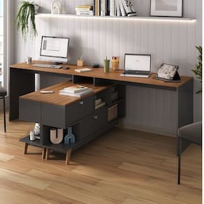 Os produtos da linha Home Office possuem um design sofisticado, reto, com um acabamento moderno. Podem ser utilizados tanto como escritório ou até trabalhos em seu lar. Assim, você tem muito mais praticidade no seu dia a dia e melhor desempenho no trabalho. Altura do Conjunto: 75.5 cm Ambiente: null Ambiente Principal: Escritório Cor: Preto Informação Complementar: 2x Mesa Escrivaninha em L 120x136cm Retrô 2 Portas Pés Madeira Maciça Grafite/Nogal Largura: 136 cm Altura: 75,5 cm Peso: 37 kg Profundidade: 45 cm Necessita Montagem: Sim