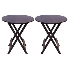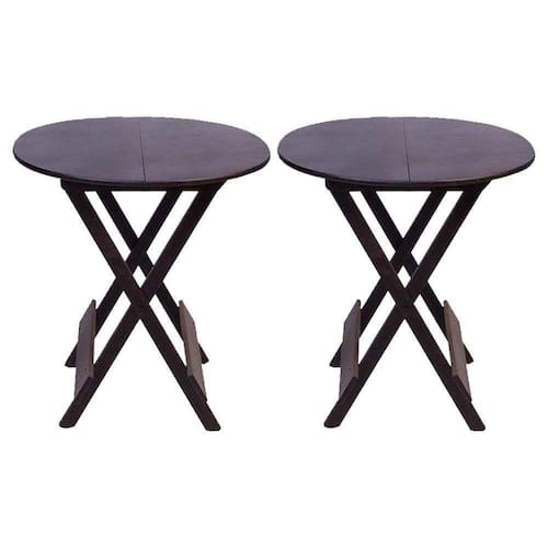 Kit 2 Mesas Redondas Dobráveis Em Madeira Maciça 70x70 Tabaco Ideal Para Bares E Restaurantes