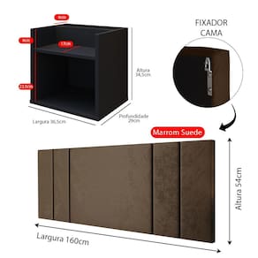 Kit 2 Mesinha Pequena Suspensa Madri Apoio Lateral Cabeceira Moderna Cama Box Casal Queen 1,60 Luana - Marrom
