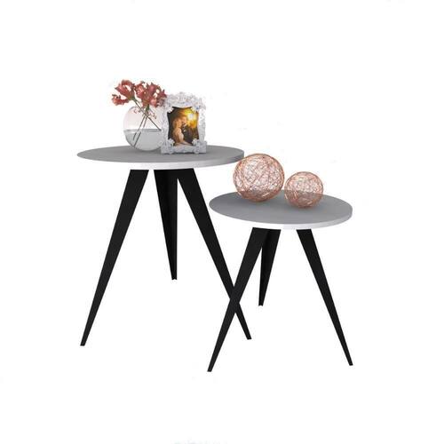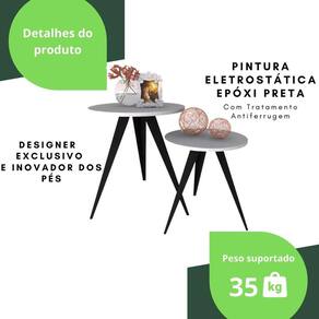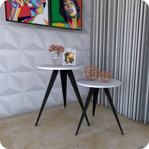2 Mesinhas Lateral De Canto Para Sala e Quarto Redonda P.B A Mesinha de Canto Evidence é ideal para compor salas e quartos, pois seu projeto utilizam madeira e aço, o que a torna atemporal com muita versatilidade na hora de combinar cores e outros elementos para os mais diferentes estilos decorativos. Querendo uma Mesinha de Canto Exclusiva e diferente do que há no mercado para você arrasar na decoração O grande charme são os traços de seus pés com estilo retrô, fabricados em aço resistente e durável, já que recebem uma camada de proteção contra ferrugem com acabamento de pintura eletrostática epóxi, para evidenciar o tampo de madeira. Mesinha de Canto é super versátil podendo ser utilizada para colocar copos e xícaras, apoiar controles remotos, descansar livros e óculos, deixar o celular carregando, expor as bebidas, apoiar a luminária ou o abajur e entre outros. BENEFÍCIOSAcabamento PremiumResistenteQualidade garantida com Corte a Laser do AçoPintura Eletrostática Epóxi com tratamento anti-ferrugemBatoque Emborrachado nos pés para não riscar o piso ou escorregarDesigner Exclusivo e Inovador dos Pés ESPECIFICAÇÕES TÉCNICAPeso Suportado: 35KgMaterial dos pés: AçoMaterial do Tampo: Madeira MDP 15mmAcabamento da Estrutura dos pés: Pintura Eletrostática EpóxiCor dos pés: Preto FoscoCor do Tampo: BrancoRequer Montagem: SimNível de Dificuldade de montagem: FácilConteúdo da Embalagem: 2 Mesas de Canto MEDIDAS:Diâmetro do Tampo: 45CmAltura dos pés: 50CmAltura Total: 51.8cm Diâmetro do Tampo: 45CmAltura dos pés: 40CmAltura Total: 41.8cm