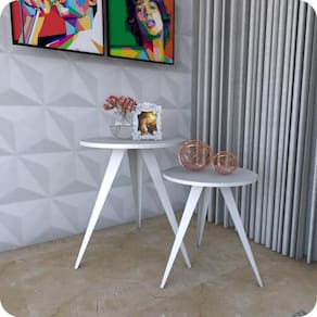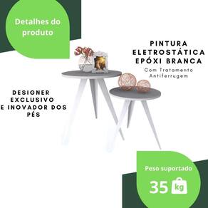 ESPECIFICAÇÕES TÉCNICA Peso Suportado: 35Kg Material dos pés: Aço Material do Tampo: Madeira MDP 15mm Acabamento da Estrutura dos pés: Pintura Eletrostática Epóxi Cor dos pés: Branco Cor do Tampo: Branco Requer Montagem: Sim Nível de Dificuldade de montagem: Fácil Conteúdo da Embalagem: 2 Mesas de Canto