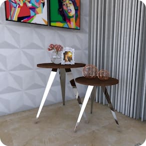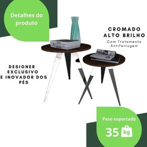 Querendo uma Mesinha de Canto Exclusiva e diferente do que há no mercado para você arrasar na decoração O grande charme são os traços de seus pés com estilo retrô, fabricados em aço resistente e durável, já que recebem um lindo acabamento cromado dando um Alto Brilho, para evidenciar o tampo de madeira.
