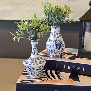 Medidas: Altura Aproximada: 11,5cm / Largura Aproximada: 7,0cm / Profundidade Aproximada 7,0cm / Peso: 120g Altura Aproximada: 12,5cm / Largura Aproximada: 7,0cm / Profundidade Aproximada 7,0cm / Peso: 120g Material: Porcelana Cor: Azul e Branco Conteúdo da Embalagem: 2 Mini Vaso de porcelana azul e branca ATENÇÃO as demais decorações das fotos são meramente ilustrativas e sugestivas, não estão inclusas no anúncio.