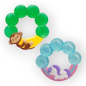 Kit 2 mordedores infantil argola com agua textura macia massagear gengiva bebe buba Cor: macaquinho - unicornio Kit com 2 unidades.