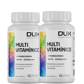 Composição: O multivitaínico da dux nutrition é composto por vitaminas a, c, d, e complexo b, além de minerais como zinco, magnésio, e selênio.