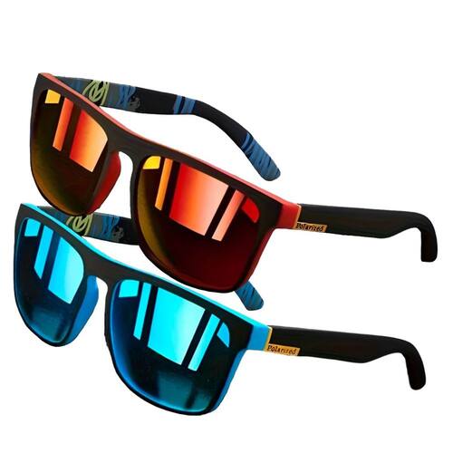 Kit Óculos De Sol Azul e Vermelho Masculino Polarizado