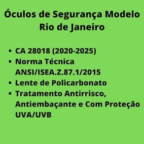 EPI - Óculos de Segurança Modelo Rio de Janeiro