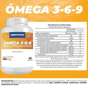 O ômega 3 newnutrition é um produto à base de óleo de peixe extraído de águas frias e profundas das regiões polares, sendo rico em ácidos graxos de cadeia longa, da série ômega 3. Seus constituintes são: o ácido eicosapentaenóico epa e o ácido docosahexaenóico dha , sendo considerados ácidos graxos essenciais. O ômega 3 é um ácido graxo essencial, mas não pode ser produzido pelo nosso organismo, e por isso, precisamos obtê-los através da alimentação ou suplementação. Sugestão de uso: ingerir 1 cápsula, 3 vezes ao dia, preferencialmente 30 minutos antes das principais refeições. Ingredientes: óleo de peixe concentrado e antioxidante mistura de tocoferóis. Composição da cápsula: gelatina, água purificada e umectante glicerina. Não contém glúten. Alérgicos: contém derivado de peixe. Advertências: este produto não é um