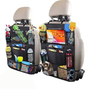 Perfeito para carros de passeio, suvs, táxis, motoristas de aplicativo e famílias com crianças, ele possui 9 bolsos funcionais e 1 suporte transparente para tablet que permite uso da tela sensível ao toque, garantindo entretenimento durante viagens.