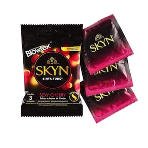 Uma experiência sedutora. SKYN sexy cherry é o primeiro preservativo produzido em poliisopreno (sem látex natural) com sabor e aroma de cereja. Preservativo inteiramente saborizado.