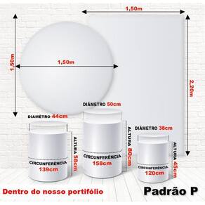Especificações do produto: Os painéis são produzidos com qualidade fotográfica em impressão sublimática digital de última tecnologia. Estamos sempre atentos às novidades e tendência do mercado. O material utilizado é tecido malha flexível poliéster com elástano 240g/ml de ótimo caimento e não reflete luz. O melhor disso tudo não amassa. Isso é o sonho de todo decorador. Possui costura overlock nas laterais para não desfiar e elástico no redondo. Pode ser molhado ou lavado com água e sabão neutro, evite ser exposto ao sol pois secam rapidamente. As cores dos produtos podem variar de tonalidade em 15% devido resolução do monitor ou tela do celular, mas nada que interfira na qualidade e beleza do mesmo. contra defeito de fabricação. Sobre efeitos 3d, 4k, 8k e glitter: São efeitos que não podem serem visto à olho nu, somente por trás de lentes de câmeras. Vou dar um exemplo quando vamos no cinema e tiramos o óculos fica turvo e aparentemente tremidas as imagens e assim são o mesmo com as imagens impressas. Façam o teste se não conhecerem dos efeitos e verão o quanto ficam lindas e maravilhosas e encante seu público alvo. Painel redondo: Painel redondo 1,50m de diâmetro Não acompanha estrutura Capas de cilindro: Não acompanha cilindros de mdf Medidas padrão p do anúncio Cilindro grande: altura: 80 cm x diâmetro: 50 cm x circunferência: 157 cm Cilindro médio: altura: 58 cm x diâmetro: 44 cm x circunferência: 141 cm Cilindro pequeno: altura: 45 cm x diâmetro: 38 cm x circunferência: 119 cm Painel retangular: Painel vertical com passa varão 1,50 largura x 2,20 altura . Não acompanha estrutura. Atenção clientes: Não fazemos alterações em imagens e em medidas do painel e dos cilindros tem que ser como o padrão do anúncio. Não aceitamos artes prontas e inclusão de nomes. Marca: Felicitá Ean: 2960008339527