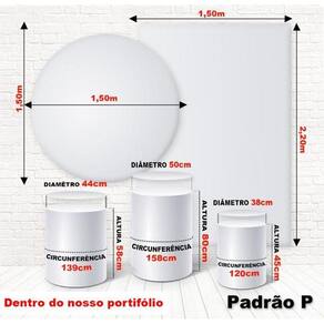 Capas de cilindro: Não acompanha cilindros de mdf Medidas padrão p do anúncio Cilindro grande: altura: 80 cm x diâmetro: 50 cm x circunferência: 157 cm Cilindro médio: altura: 58 cm x diâmetro: 44 cm x circunferência: 141 cm Cilindro pequeno: altura: 45 cm x diâmetro: 38 cm x circunferência: 119 cm