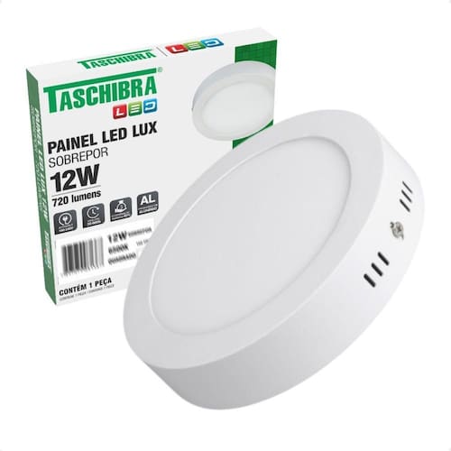 Kit 2 Painel de Led Redondo Sobrepor 12W Bivolt Taschibra 3000K Quente