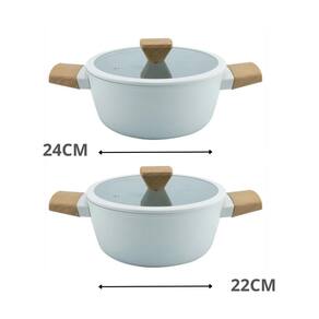 Apresentamos a panela da nova coleção Norma, uma verdadeira revolução em utensílios de cozinha, combinando elegância, funcionalidade e tecnologia de ponta. Esta panela é perfeita para cozinheiros que valorizam qualidade e eficiência na cozinha. Com seu acabamento de alto padrão, esta panela não só embeleza sua cozinha, mas também oferece uma performance excepcional. Ela é compatível com todos os tipos de fogões, incluindo indução, garantindo versatilidade total no preparo de suas receitas. Um dos destaques deste produto é seu revestimento antiaderente cerâmico de última geração, que permite cozinhar com menos óleo e garante uma limpeza mais fácil, sem que os alimentos grudem. Este revestimento é também mais durável e resistente a riscos, proporcionando uma experiência culinária superior. Características da panela da coleção Norma incluem: Compatibilidade com todos os tipos de fogões, incluindo indução. Revestimento antiaderente cerâmico, que reduz a necessidade de óleo e facilita a limpeza. Design elegante e acabamento de alta qualidade, que adicionam um toque de sofisticação à sua cozinha. Ideal para quem busca eficiência e estilo, a panela da coleção Norma é um investimento que transformará sua maneira de cozinhar, tornando cada refeição uma obra de arte. Experimente o prazer de cozinhar com um utensílio que une o melhor da inovação e da beleza O kit contagem: 1 Caçarola 24cm, 1 Caçarola 22cm.