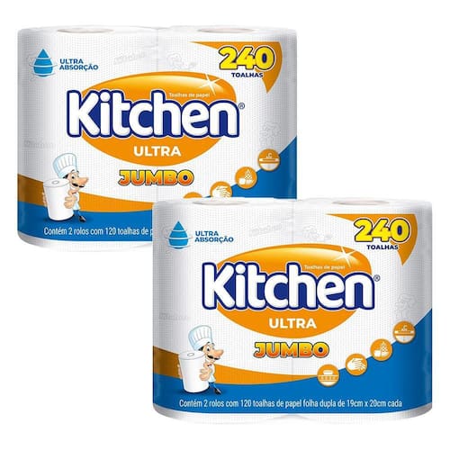 O Kit contém: 2 rolos de Papel Toalha Kitchen Ultra Jumbo com 240 Folhas cada.