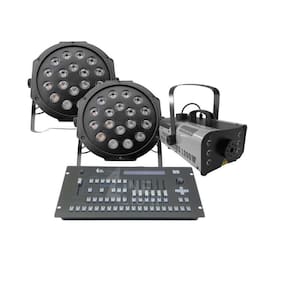 Kit 2 par led 18 leds + máquina de fumaça 1200w + mesa pilot
