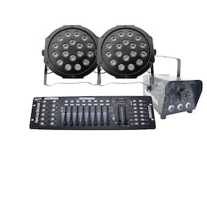 Kit 2 par led 18 leds + máquina de fumaça 600w + mesa dmx 512