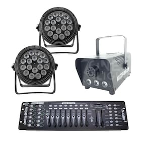 Kit 2 par led slim rgbw 18x12w + máquina de fumaça 600w + mesa dmx 512