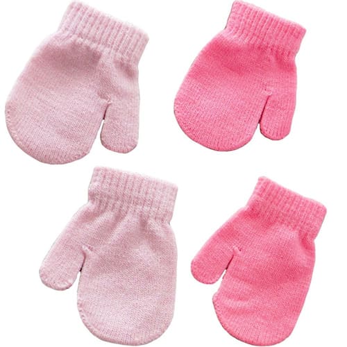 Kit 2 Pares Luva para Bebê 13x10cm Rosa Claro/Rosa Chiclete -