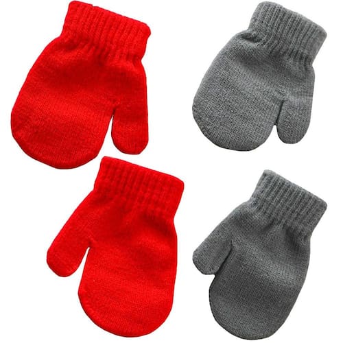 Kit 2 Pares Luva para Bebê 13x10cm Cinza/Vermelho -