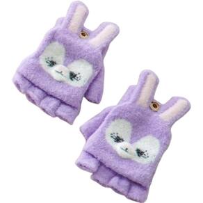 Kit 2 Pares Luva sem Dedo Infantil 16cm Coruja Cinza/Coruja Roxa -
