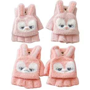 Kit 2 Pares Luva sem Dedo Infantil 16cm Coruja Rosa Claro/Coruja Rosa Velho -