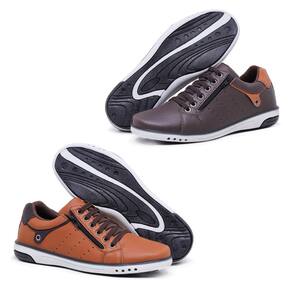 Kit 2 Pares Sapatênis Masculino Fechamento Elastico e Ziper - 43 - Marrom Chocolate