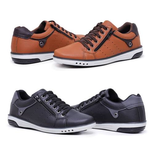 Kit 2 Pares Sapatênis Masculino Fechamento Elastico e Ziper - 37 - Laranja