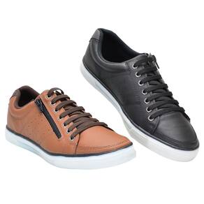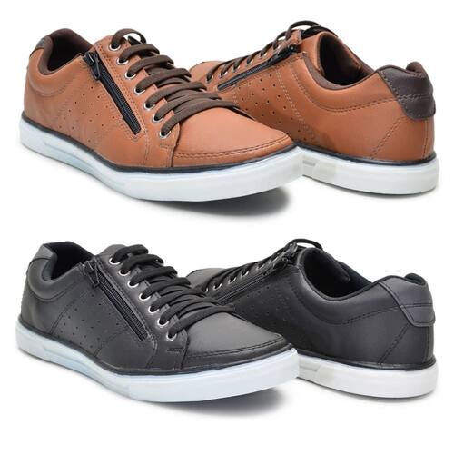 Kit 2 Pares Sapatenis Masculino Ziper Cadarço Confortável - 40 - Marrom Cacau