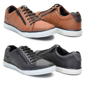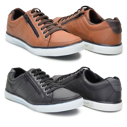 Kit 2 Pares Sapatenis Masculino Ziper Cadarço Confortável - 44 - Marrom Cacau