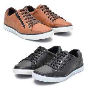 Kit 2 Pares Sapatenis Masculino Ziper Cadarço Confortável - 41 - Marrom Cacau