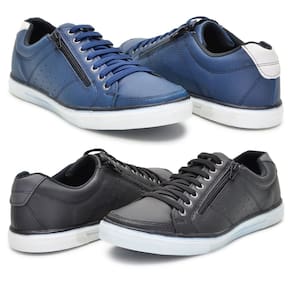 Kit 2 Pares Sapatenis Masculino Ziper Cadarço Confortável - 41 - Azul Marinho