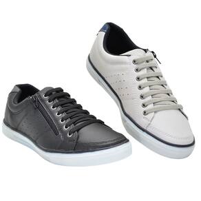 Kit 2 Pares Sapatenis Masculino Ziper Cadarço Confortável - 44 - Bege