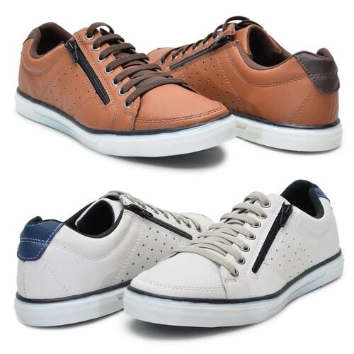 Kit 2 Pares Sapatenis Masculino Ziper Cadarço Confortável - 44 - Laranja