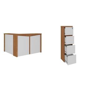Transforme seu ambiente com o Kit 2 Peças, que inclui um Balcão de Atendimento em L e um Arquivo com 4 Gavetas e Chave. O Balcão de Atendimento em L oferece uma estrutura prática e elegante, ideal para recepções ou áreas de atendimento, proporcionando um espaço eficiente e acolhedor. O Arquivo com 4 Gavetas e Chave garante segurança e organização para seus documentos, com um design robusto e funcional que se adapta a diversos ambientes. Perfeito para quem busca praticidade e estilo, este kit é a solução ideal para um espaço de trabalho organizado e seguro. Acabamento: BP Altura do Conjunto: 143.8 cm Ambiente: null Ambiente Principal: Escritório Cor: Freijó/Branco Informação Complementar: 1x Gaveteiro Alto Arquivo para Pasta Suspensa com Chave, para Escrirório e Recepção Freijó/Branco Largura: 46 Altura: 143.8 Peso: 42.3 Profundidade: 44.8 Necessita Montagem: Sim