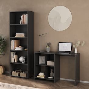 ? Adapta-se a Diferentes Ambientes: Essa estante multiuso e a escrivaninha são ideais para sala de estar, home office, escritório ou áreas de estudo, oferecendo versatilidade no armazenamento.
