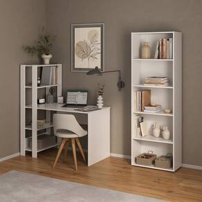1x Escrivaninha com Estante 5 Prateleiras 120cm Match Branca Largura: 120 cm Altura: 134,5 cm Peso: 25,4 kg Profundidade: 63 cm Necessita Montagem: Sim