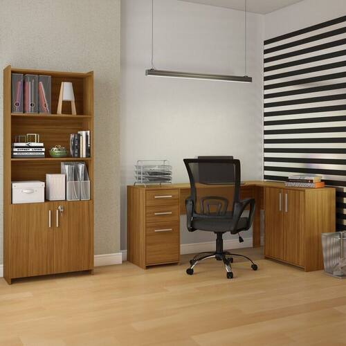 O Armário Multiuso Escritório tem duas portas, sendo uma porta com chave, produto todo em chapa de 15 mm, com uma prateleira interna, puxador de alumínio. Acabamento: Pintura UV Altura do Conjunto: 177.3 cm Ambiente: Escritório Ambiente Principal: Escritório Cor: Freijó Informação Complementar: 1x Mesa de Escritório em L 2 Gavetas 3 Portas Office Nt 2005 Freijó Trend Largura: 157 cm Altura: 73,9 cm Peso: 44,16 kg Profundidade: 45 cm Necessita Montagem: Sim