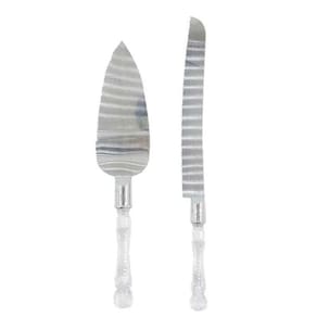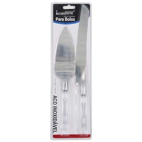 Jogo de Faca e Espátula P/ Bolos C/ Cabo Transparente Contém: 2 Peças Medidas: Espátula - 5x25,5 Faca - 2,5x31cm Composição: Aço Inox e Plástico Interponte Código de Barras: 7908174935841 Peso: 0,101Kg
