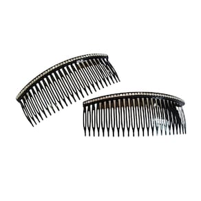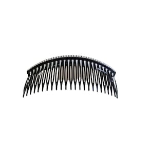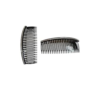 Modelo e acabamento luxuoso, atemporal em preto básico com duas linhas de strass brilhante. Design de um ângulo perfeito para aderir a cabeça. Leve e confortável. Material resistente a lavagens. Você pode usá-lo no seu dia a dia ou em uma ocasião especial. Ideal para todos os tipos de cabelos. Eles possuem pequenas bordas arredondadas em cada dente que não machucam a cabeça, e não danificam o cabelo.